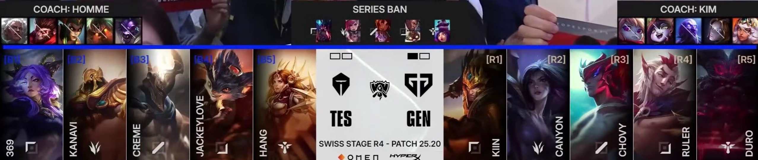 LCK 1시드 젠지와 LPL 2시드 TES의 강력한 매치업이었습니다. 젠지는 스위스 2라운드에서 AL에게 일격을 맞았으나, 3라운드에서 T1을 꺾고 올라와 TES를 만났습니다.