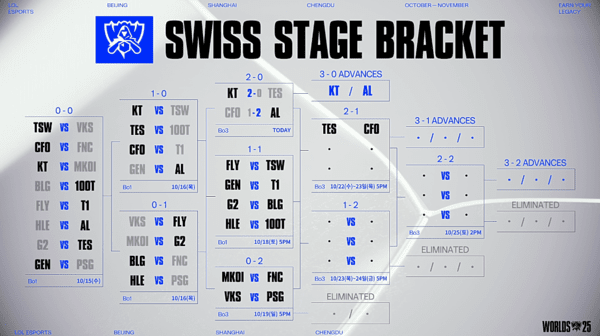 | 2025 롤드컵 스위스 스테이지, 어제의 눈물과 환희! 8강행 티켓의 주인은 누가 될 것인가? (10월 19일 결과 및 5일차 롤드컵 대진표) (1) | 2025.10.20 |